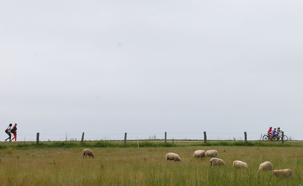 Am letzten Wochenende knallt endlich die Sonne. Während die Kinder mit großen Schlapphüten und UV-Neoprenanzügen ausgestattet werden, tragen die Mütter leuchtende Sonnenbrände auf den Dekolletés zur Schau. Es geht mit Sack und Pack an den Strand, immer mit dabei: die obligatorische Strandmuschel jeder pflichtbewussten Mutter. Der Strand funkelt mit farbenfrohen Rundzelten, auf dem Zimmer häuft sich feiner Sand. Am Abend ist er in jeder Bett- und Poritze präsent und spürbar. Dazu kommen unzählige Steine in jeder Form, Farbe und Größe, Federn, Muscheln und einige Seesterne.